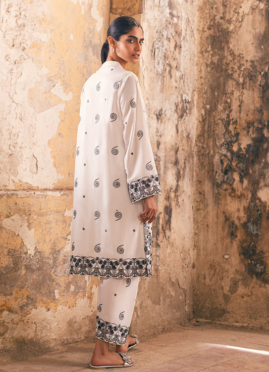 White Schiffli Embroidered Izaar